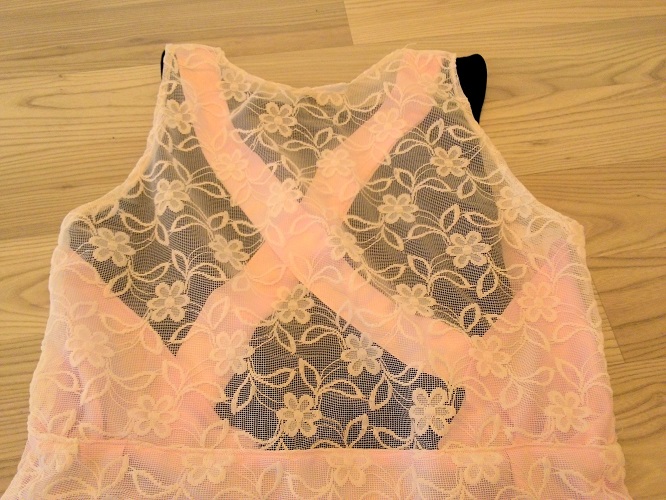 Vaaleanpunaisen alusmekon osalta poistin myös pitsin yläreunasta. Mutta apua, sen kangas loppuisi kesken! Mitä neuvoksi...